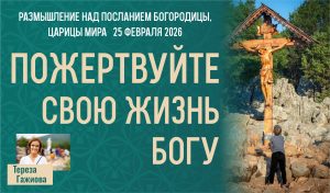 «Дорогие дети! В это благодатное время Я снова призываю вас пожертвовать свою жизнь Богу, чтобы Он вел вас к воскресению через ваше личное обращение. Детки, Бог рядом с вами и слышит ваши молитвы, но вы дремлите, и поэтому Он послал Меня к вам, чтобы Я вас разбудила и вы засияли святостью, как весенний цветок. Спасибо вам, что вы ответили на Мой призыв». (С одобрения Церкви)