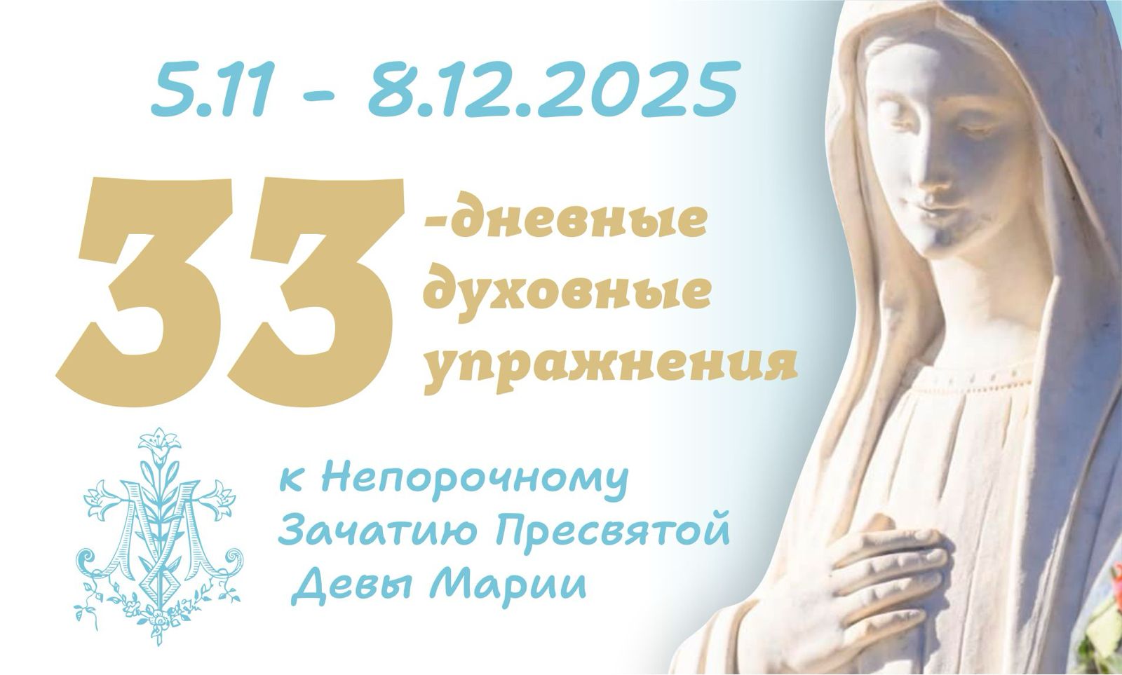 Дорогие друзья, 5 ноября 2025 года мы начинаем 33 дня духовных упражнений онлайн и завершаем их 8 декабря 2025 года — в Торжество Непорочного Зачатия Пресвятой Девы Марии.